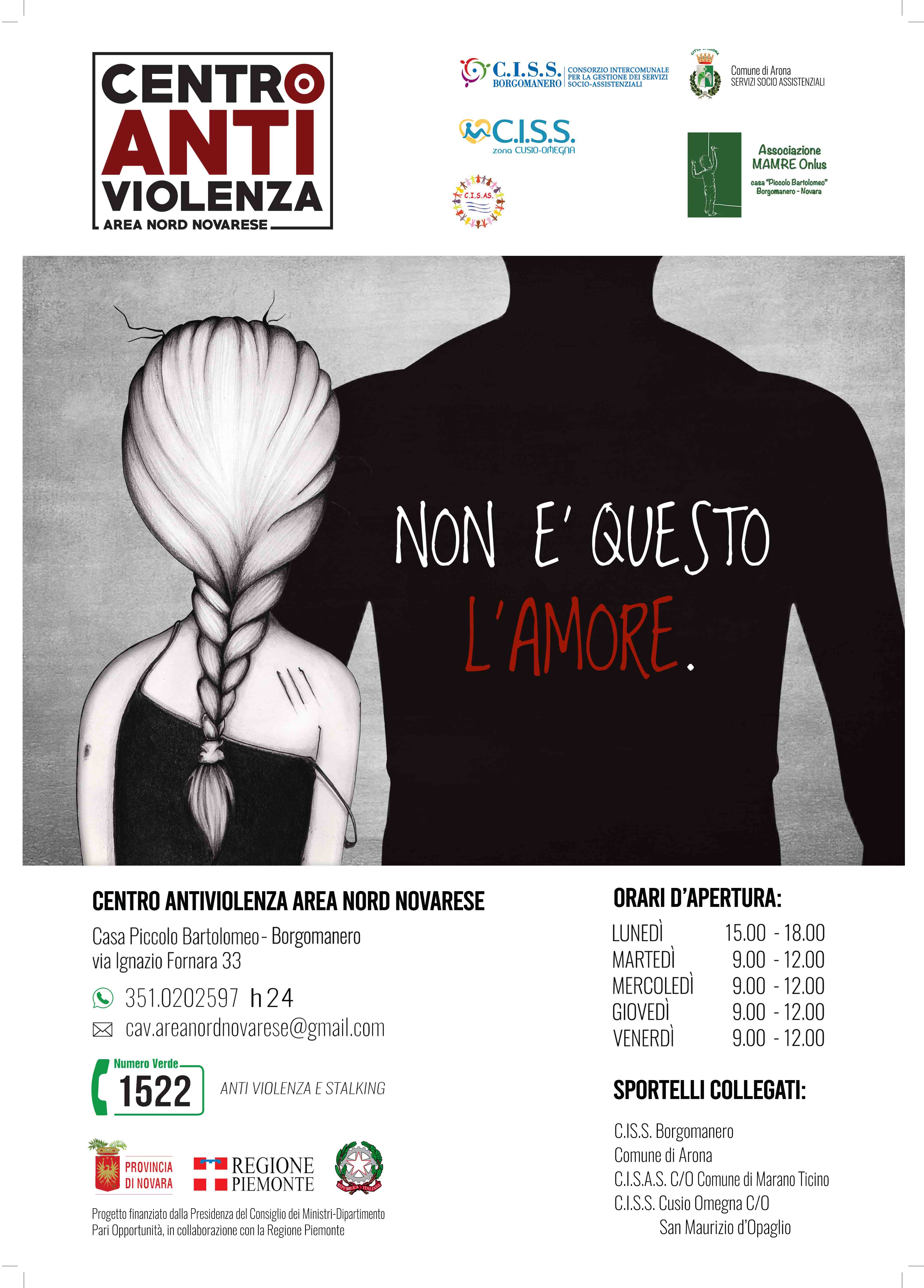 L’Assemblea Generale delle Nazioni Unite ha dichiarato nel 1999 il 25 novembre “Giornata internazionale contro la violenza alle donne”, per ricordare tutte le donne vittime di violenza. E’ stato scelto il 25 novembre poiché è la data in cui vennero uccise le tre sorelle Mirabal, assassinate nel 1960 nella Repubblica Dominicana per il loro impegno politico contro l’allora dittatore Trujillo. Tale data è diventata così il simbolo dell’atto d’accusa della società civile nei confronti del fenomeno, purtroppo ancora in crescita, della violenza sulle donne. A tal proposito si segnalano Centri antiviolenza presenti nella Provincia di Novara che svolgono servizi gratuiti e che garantiscono l’anonimato. A Borgomanero via Ignazio Fornara n. 33 è stato da poco inaugurato il Centro Anti Violenza - Area Nord Novarese presso Casa Piccolo Bartolomeo in tel. 341.0202597 h24. Inoltre è attivo il Centro Servizi Pari Opportunità in Via Ugo Foscolo 10 tel 0322 865219 oppure presso il C.I.S.S. , Sportello Pari Opportunità in Via Gozzano, 7b tel 0322 868126 o cellulare 329 1218970.