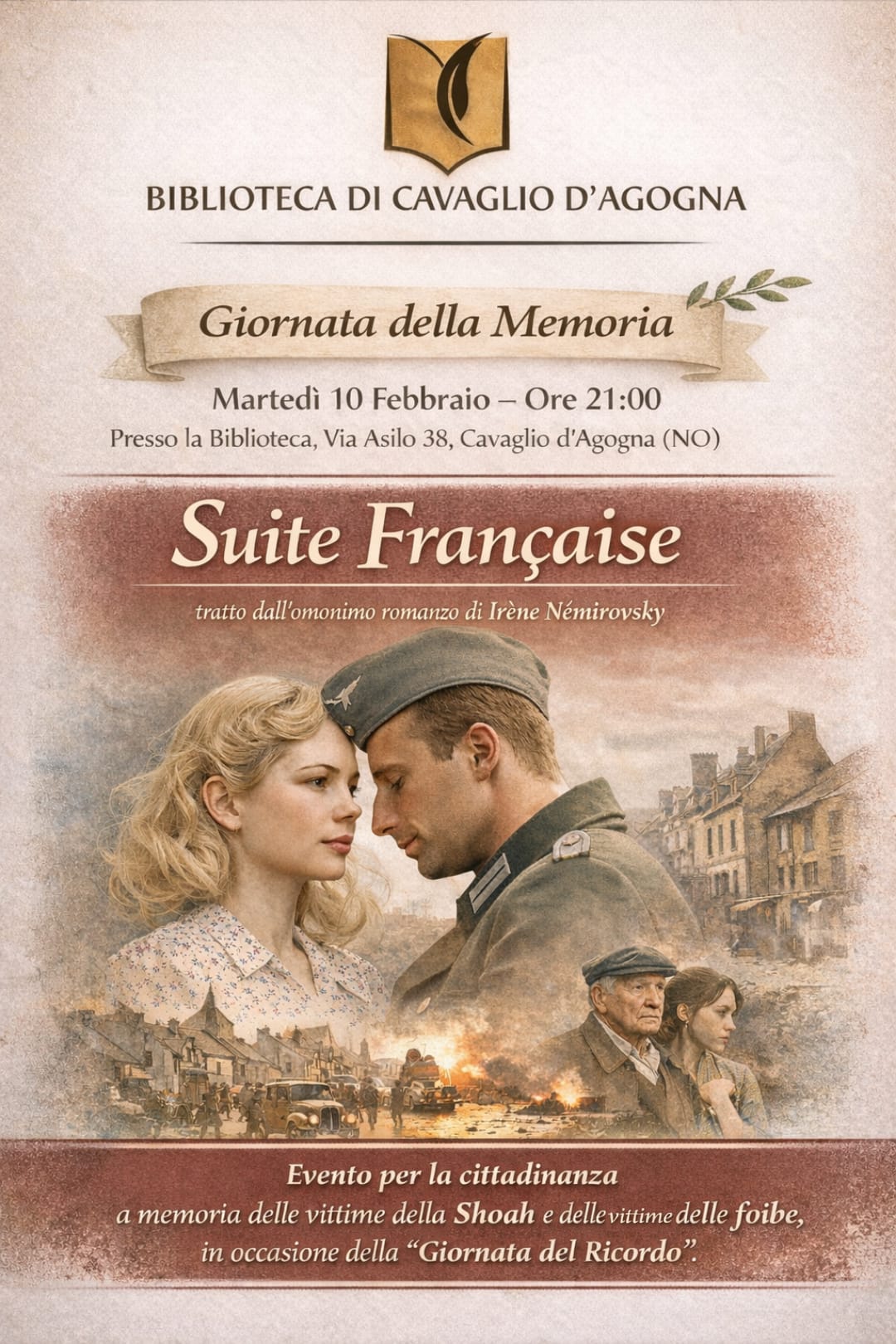 La Biblioteca, in occasione della Giornata della Memoria, organizza la proiezione del film "Suite Francaise".