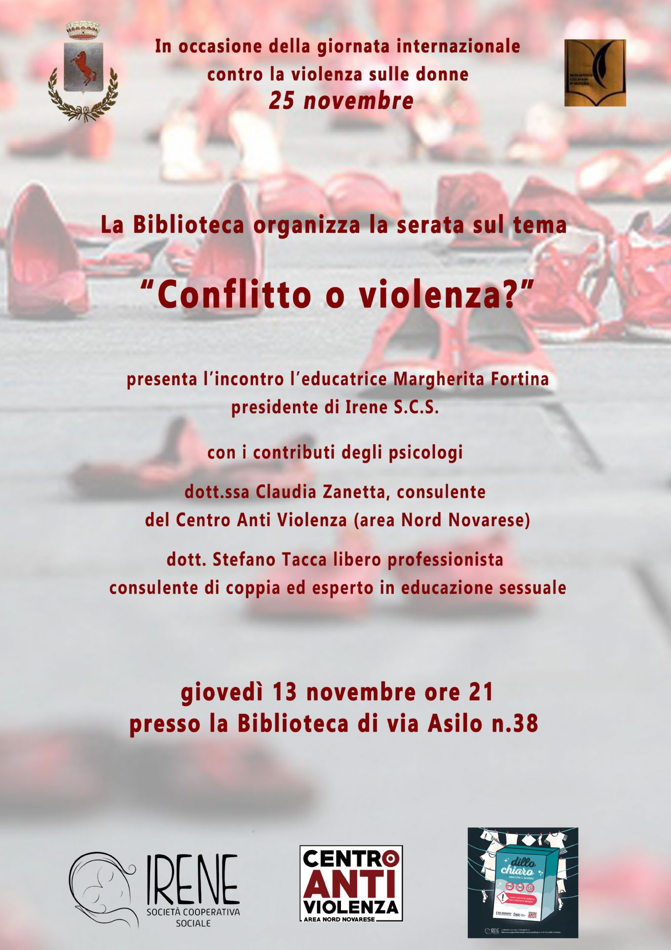 In occasione della giornata internazionale contro la violenza sulle donne, la Biblioteca organizza la serata sul tema: "Violenza o conflitto?".