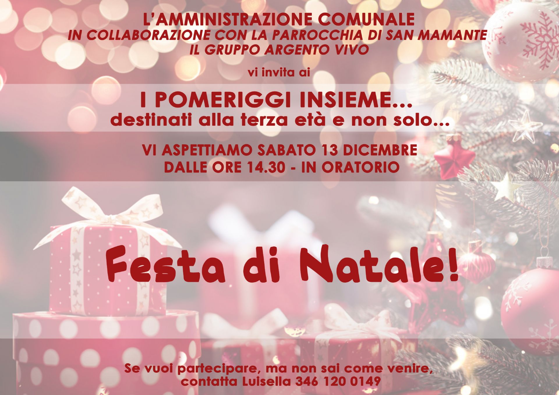 L'Amministrazione Comunale insieme alla Parrocchia di San Mamante e al Gruppo Argento Vivo vi invita a: