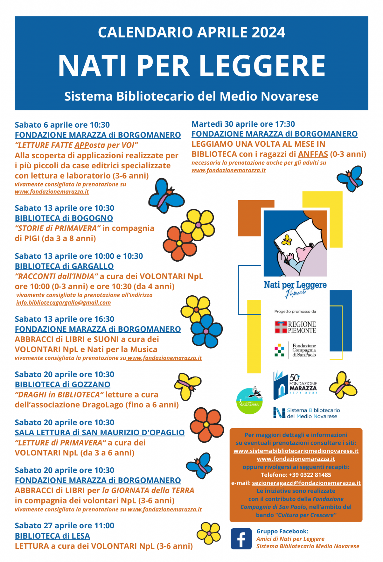 Si pubblica il calendario condiviso con gli appuntamenti NpL in programma ad aprile nelle biblioteche del Sistema Bibliotecario del Medio Novarese