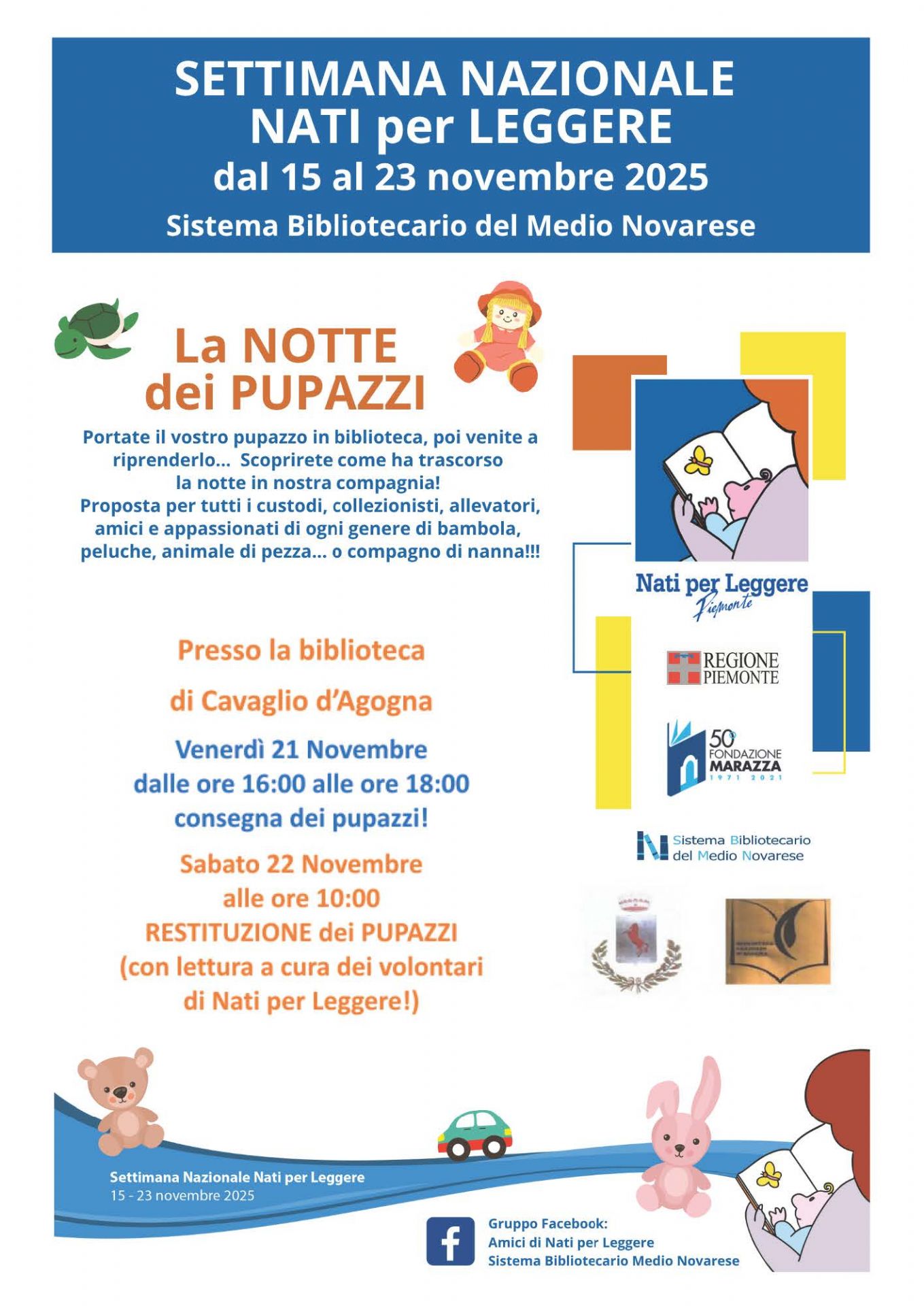 In occasione della Settimana Nazionale Nazionale Nati per Leggere, la Biblioteca organizza la "Notte dei pupazzi".