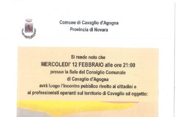Si rende noto che Mercoledì 12 Febbraio 2020 alle ore 21.00 presso la Sala del Consiglio Comunale di Cavaglio d'Agogna avrà luogo l'incontro...