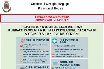 Emergenza Coronavirus - Comunicato del 14/10/2020