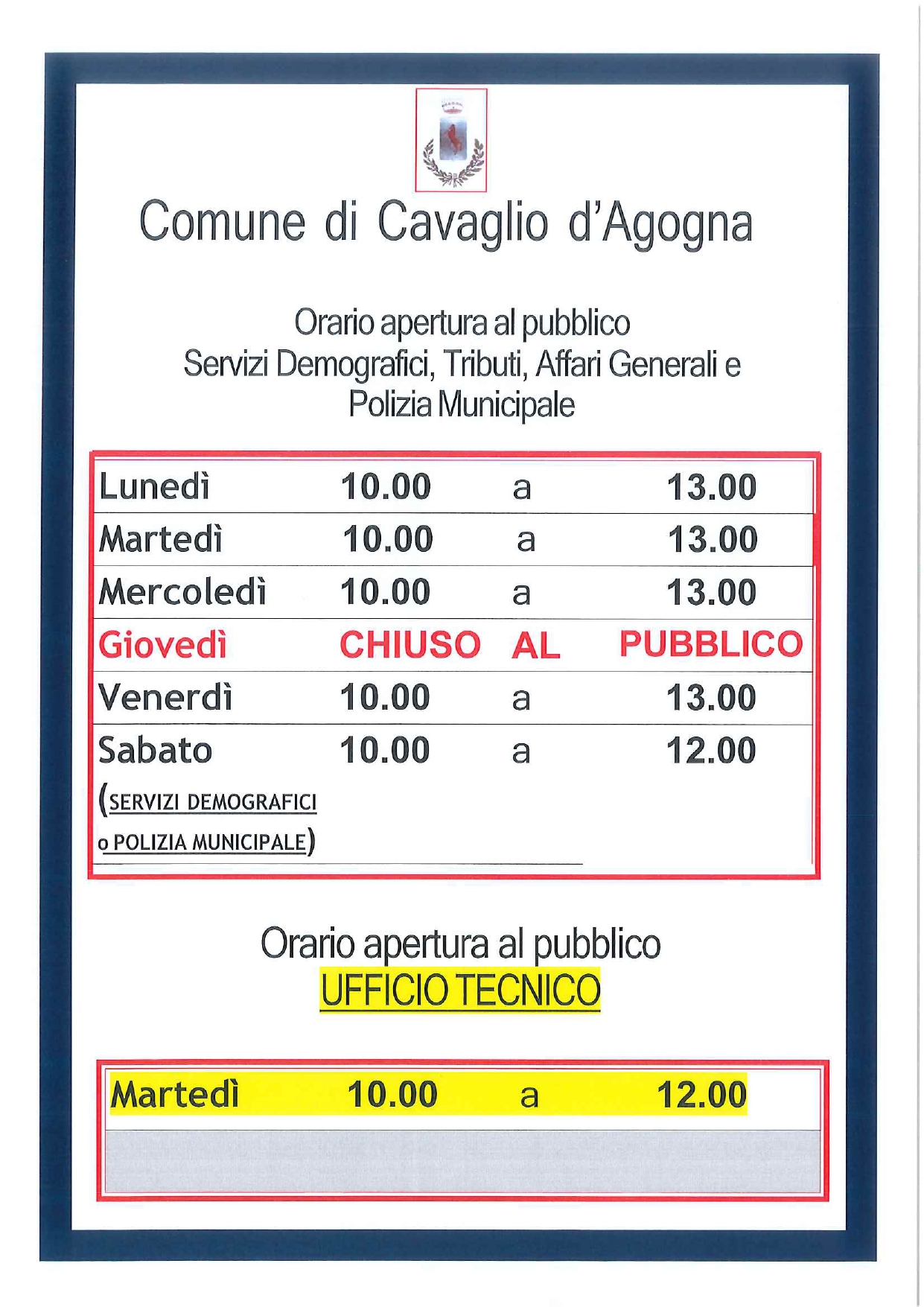 In allegato si pubblicano i nuovi orari degli Uffici Comunali
