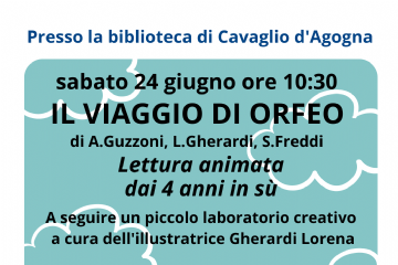 Presso la Biblioteca di Cavaglio d'Agogna Sabato 24 Giugno ore 10.30 si terra la lettura animata dai 4 anni sù dal titolo "Il viaggio di Orfeo" di...
