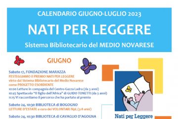 Il Sistema Bibliotecario del Medio Novarese presenta il calendario Giugno-Luglio 2023 del progetto "Nati per Leggere"