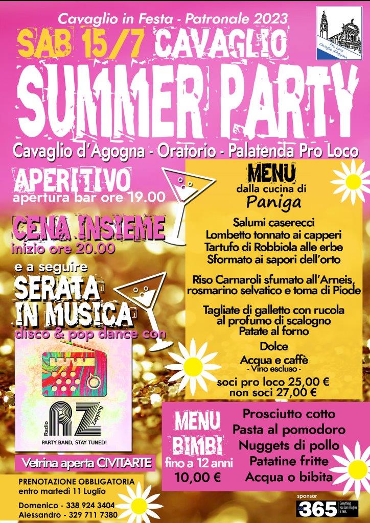 Sabato 15/07/2023 "SUMMER PARTY" - Oratorio Pala tenda Pro- loco