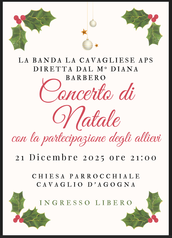 La Banda La Cavagliese APS, diretta dal Maestro Diana Barbero, vi invita al