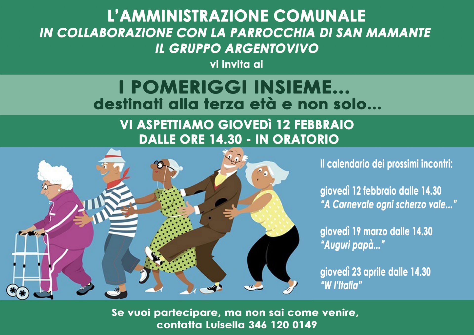 Ricominciano i "pomeriggi" del 2026, grazie alla collaborazione tra Amministrazione Comunale, Parrocchia di San Mamante e gruppo Argentovivo.